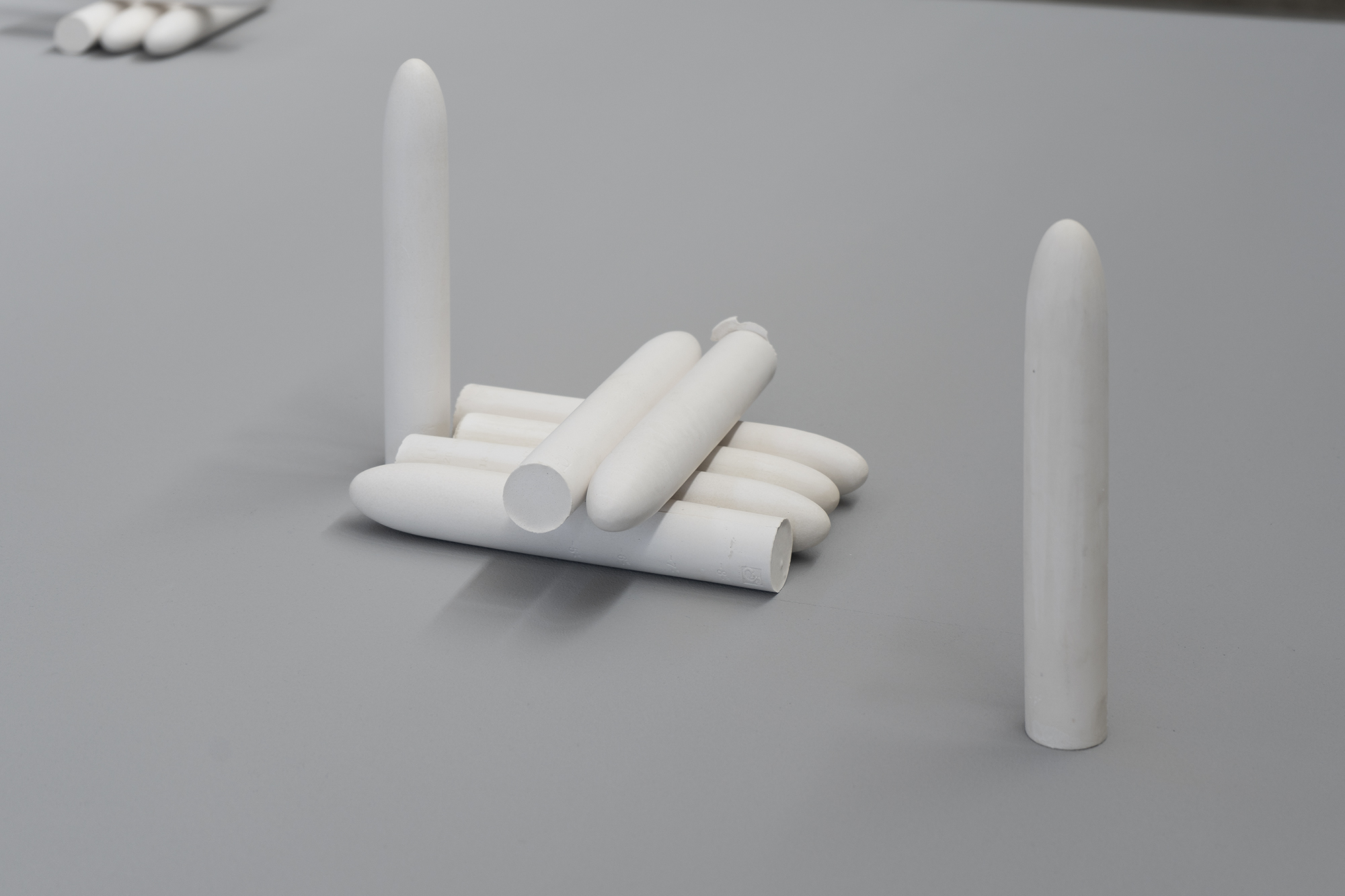 Som material, är vi människor också möjliga att bearbeta, forma och omforma. Dagliga övningar kan ändra kroppen och sinnet. Victoria Verseaus av gjutna dilatorerna är resultatet av en repetitiv praktik. En gång i taget fylls och töms formen, avgjutningarna adderas en i taget till ett långsamt växande monument. Formens ursprung är som ett instrument för en liknande men inverterad praktik, upprätthållandet av neo-vaginan. Arbetet tar form, materialiseras i utställningsrummet och konstnärens kropp. Ett utsträckt material som ändrar form; sinnet är också kött och kött är ett material.